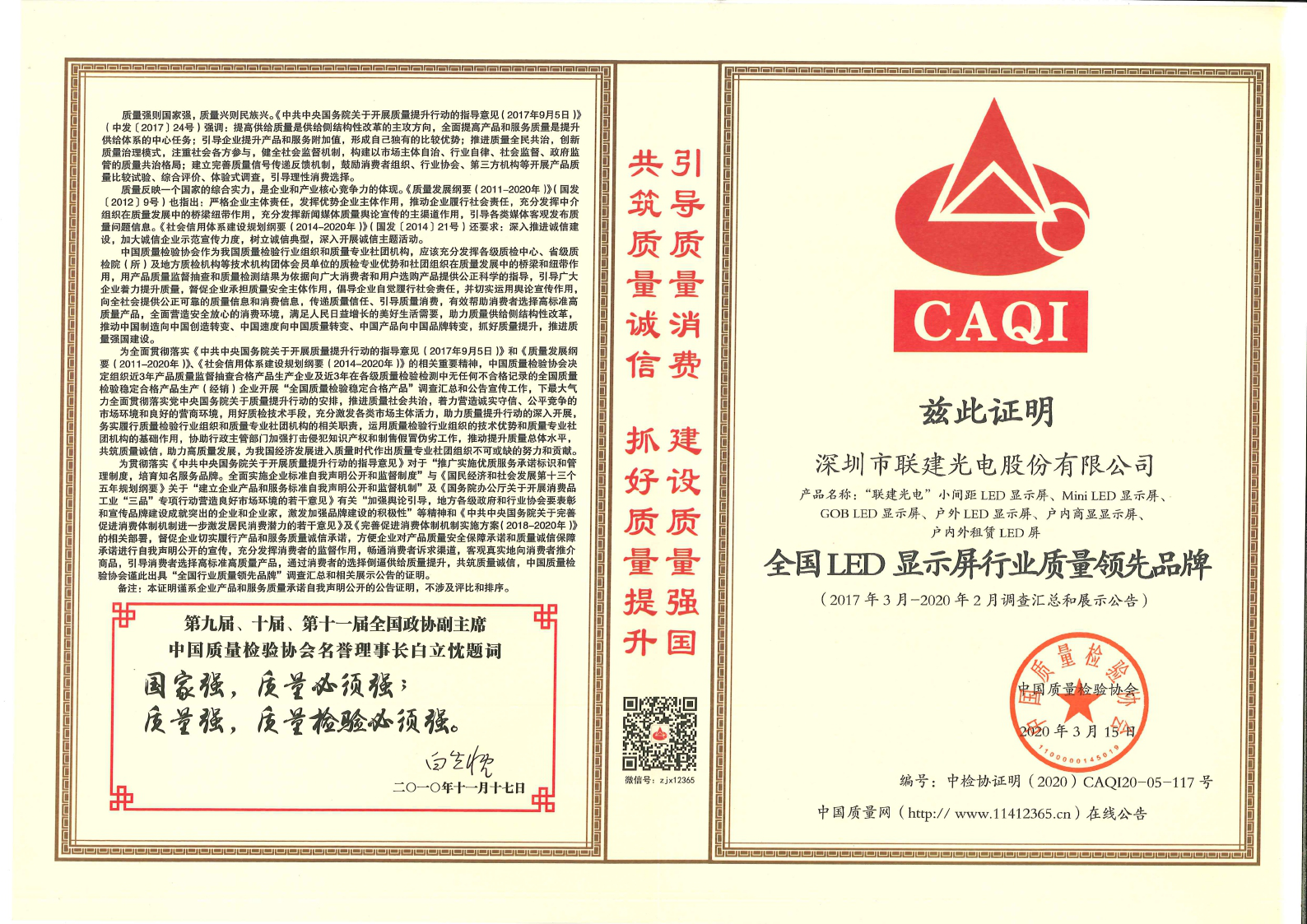 感谢社会各界对联建光电品牌的长期关注和支持!