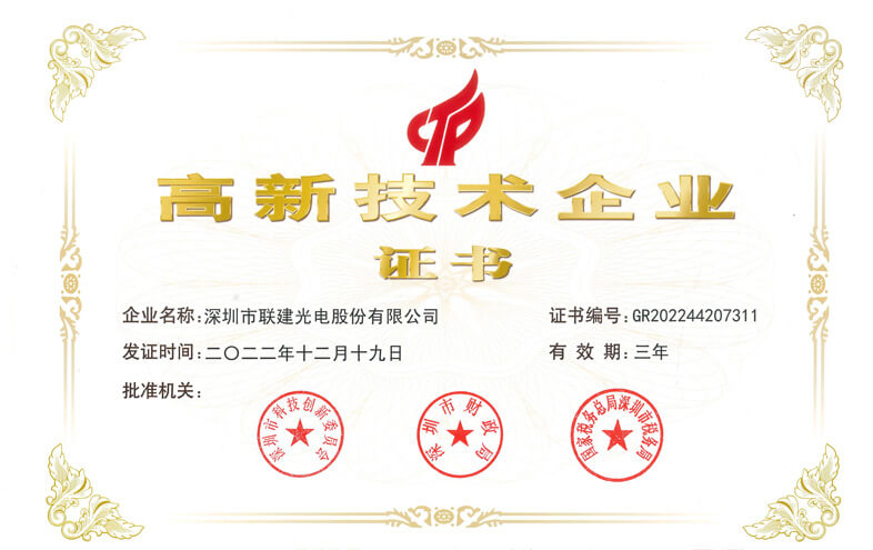 3.如有发现疑似假冒“联建光电”产品,可致电并邮寄至深圳联建光电有限公司总部,我司将提供免费鉴定服务。