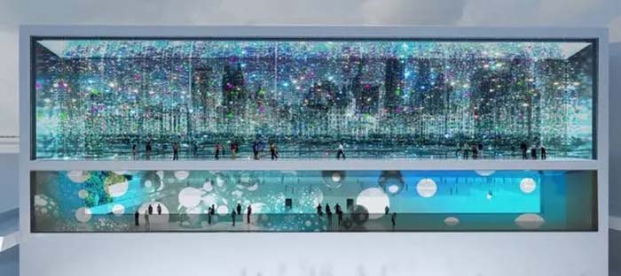 该项目位于上海浦东美术馆,是浦东新区重大文化工程项目,地处陆家嘴中心地带,紧邻东方明珠塔、国际会议中心,被誉为身处“诗歌级的地理位置”。此外,该美术馆由法国著名建筑师让·努维尔设计,他从杜尚的作品《大玻璃》当中得到灵感,美术馆面向黄浦江的外立面由两块深5米、宽55米、高度分别为12和6米的“大玻璃”组成。而联建光电为美术馆打造的P3小间距户外第一巨幕紧贴“大玻璃”后方,总面积800㎡,总像素近8600万,整屏分辨率远超10K标准,成为世界艺术杰作的绝美展示“窗口”,而平日屏幕不点亮的时候,“大玻璃”通过物理反射可将上海滩对岸的特色建筑在玻璃墙中呈现,美术馆外游客可随时间推移欣赏到不一样的外滩的景观。