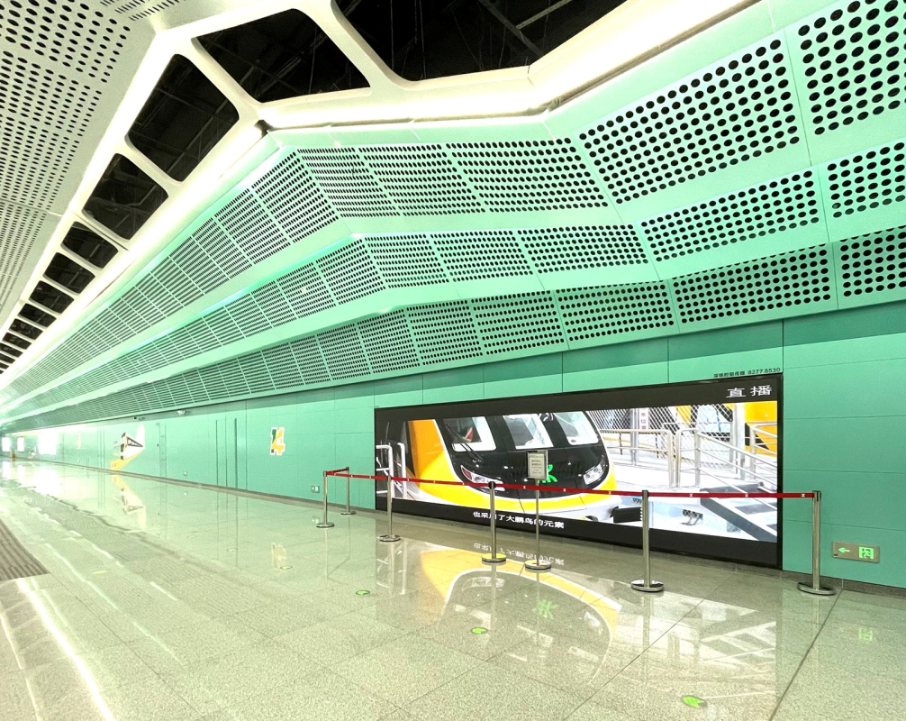 联建光电打造的轻薄大屏不仅“有颜”,还“好用”。高效散热性能让乘客近距离观看也不会产生不适热感;真空镀膜、IP65户外防护等技术让大屏在人流量大的地下环境中依然持久运行。同时采用Vmini微间距显示技术,全倒装COB封装,成就超高清画质,绝佳的屏幕位置也极易吸引乘客注意,“吸睛”的同时也“吸金”。地铁项目复杂,地下施工环境恶劣,联建光电派出专业工程师实地勘查、确认点位、现场安装,以保项目顺利完成。